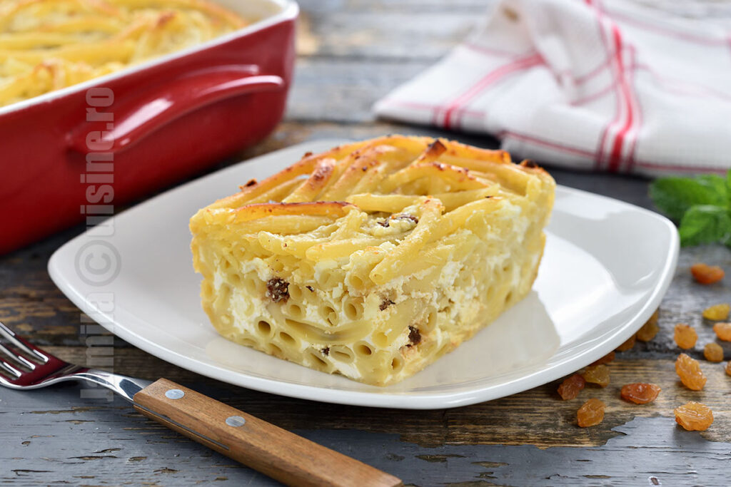 Reteta de macaroane cu branza la cuptor este una a copilariei noastre. Nu cred ca exista copil care sa nu fi mancat acest preparat facut de mama sau de bunica. La mine in familie mama il pregatea foarte des. Imi spunea ca-l manca la cina atunci cand era la internat pe timpul liceului si ca niciodata nu se satura. Isi promisese ca atunci cand va fi „la casa ei” isi va face macaroane cu branza in fiecare zi. Spre norocul ei si tatalui meu ii plac foarte mult, asa ca le face si acum cu placere. Eu si fratele meu nu prea ne omoram dupa ele. Nu ne placea combinatia de branza sarata si zahar, asa ca le preferam fie dulci, fie sarate. Nici acum nu pun prea multa branza telemea in ele pentru ca nu vreau ca gustul sarat sa se simta prea tare.